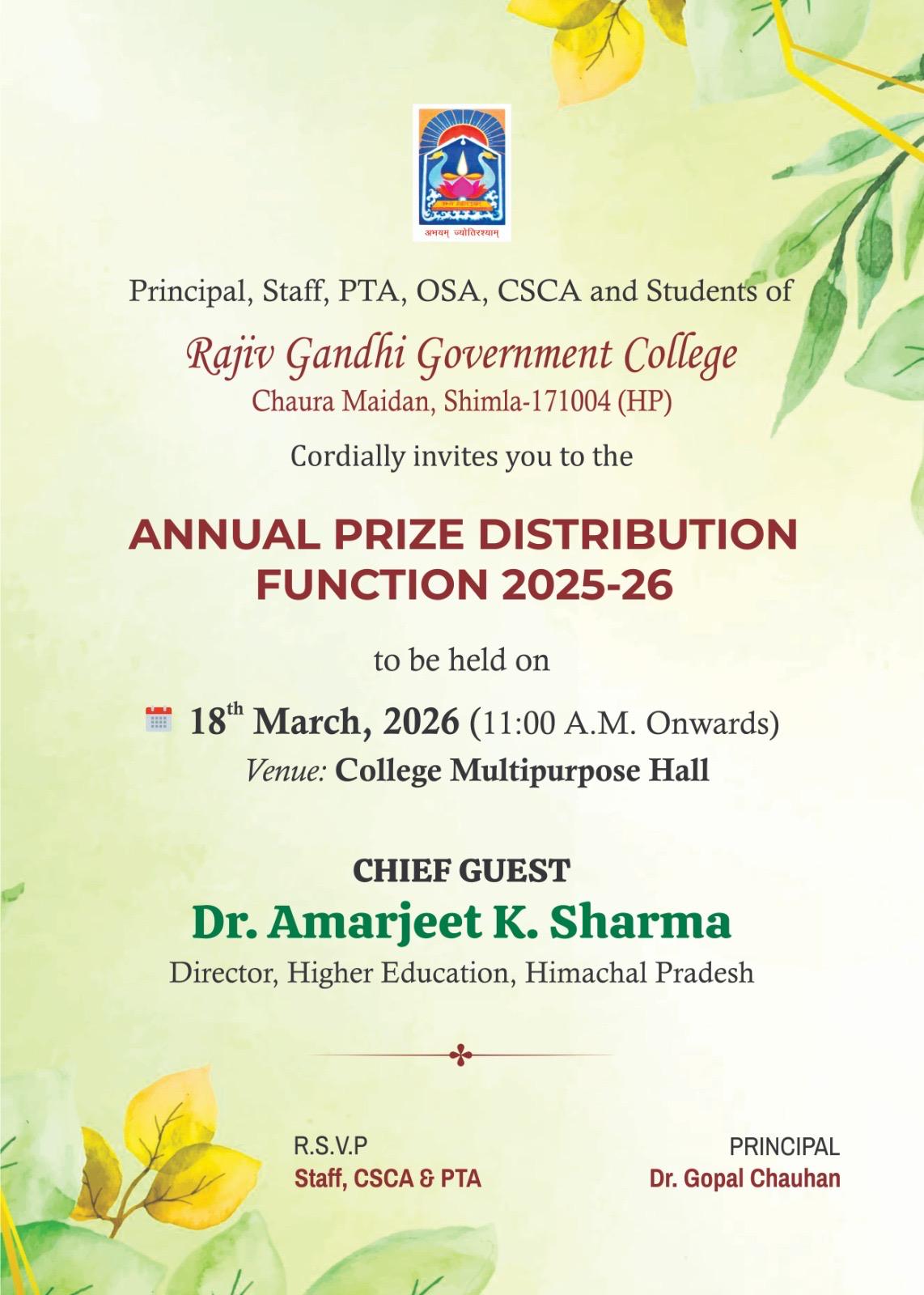 Rajiv Gandhi Government College Chaura Maidan, Shimla H.P 171004